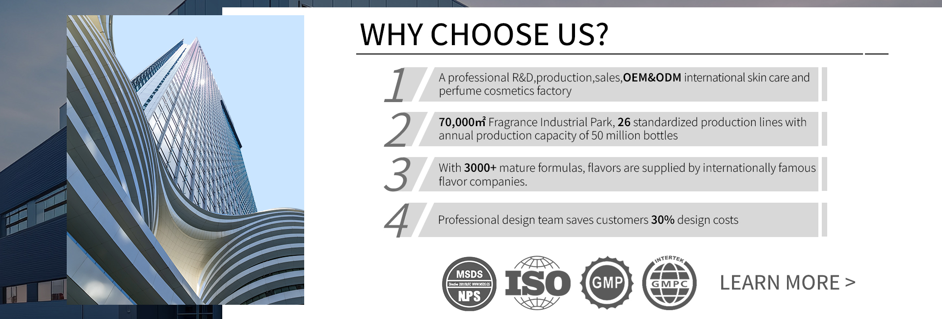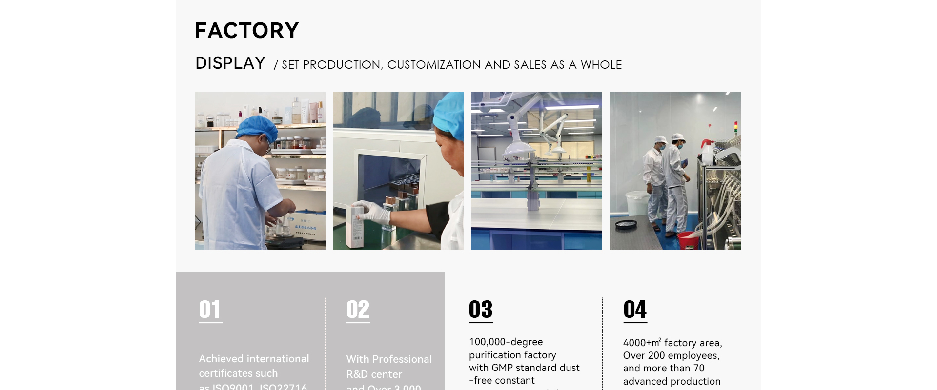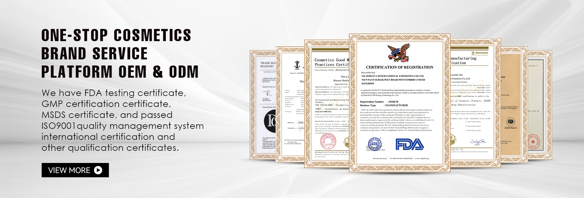 *Achieved international certificates such as ISO9001, ISO22716, GMPC, MSDS etc.