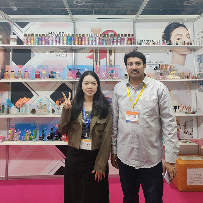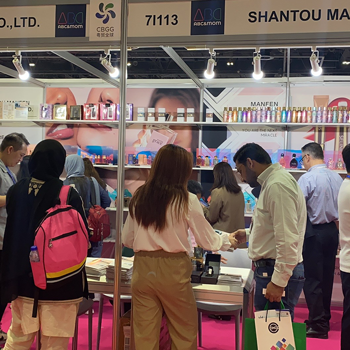 December 20, 2023, the second day of the 15th HOMELIFE UAE International Home Gifts Exhibition,Shantou Manfen Cosmetics Co., Ltd. also enthusiastically participated in this exhibition. We showcase the best products including glamorous fragrances, color cosmetics, stylish skin care products with beautiful textures and vibrant colors. It not only displays the latest products, but also provides free cosmetics training services to visitors. Many visitors are familiar with our company's cosmetics. They are very happy to feel the style of Dubai during this exhibition. We also had friendly conversations with customers. The customers were satisfied with our products and placed orders. We hope that the trade between the two parties will be smoother in the future.