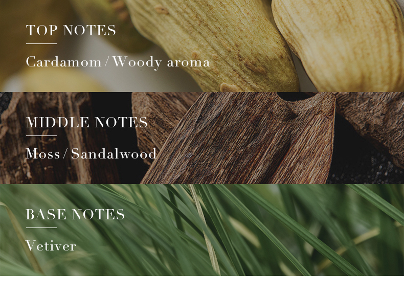 Smell: Cardamom, woody, moss, sandalwood, vetiver